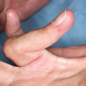 هو حالة غير مؤلمة تؤدي إلى انكماش إصبع واحد أو أكثر باتجاه راحة اليد بشكل دائم. تتشكل عقدة من الأنسجة تحت الجلد، يؤدي في النهاية